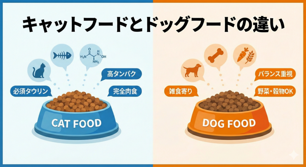 見た目は同じ、中身は別物!キャットフードとドッグフードの決定的な違いと注意点
