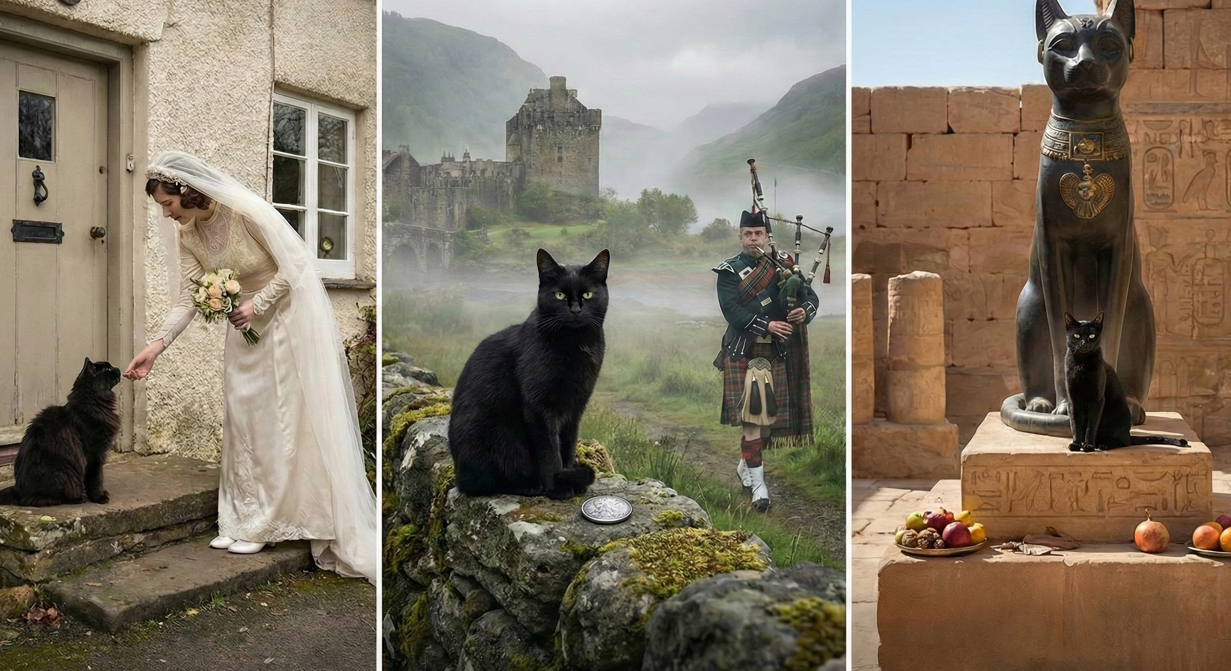 古代エジプトでは、猫そのものが神聖視されていました。特に女神バステトは猫の姿をしており、黒猫はその化身として、家を保護し、豊穣をもたらす存在として崇拝されていました。