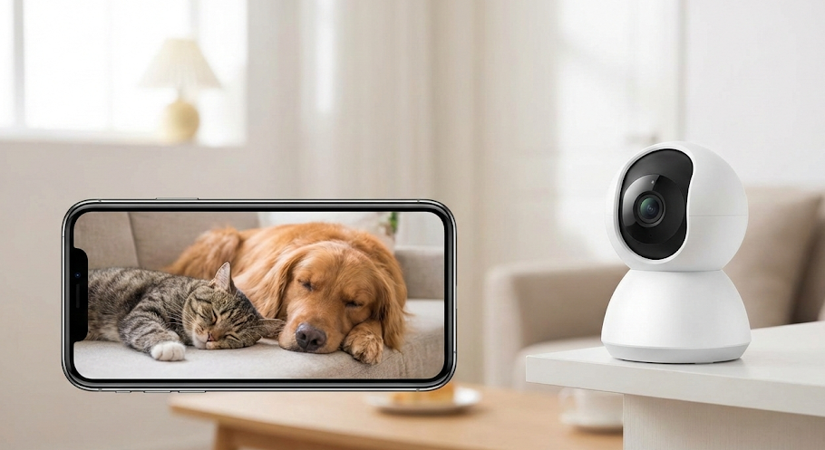 一般的にペットカメラとは、自宅のWi-Fiに接続し、外出先のスマートフォンから専用アプリを通じてリアルタイムの映像を見るためのネットワークカメラを指します。